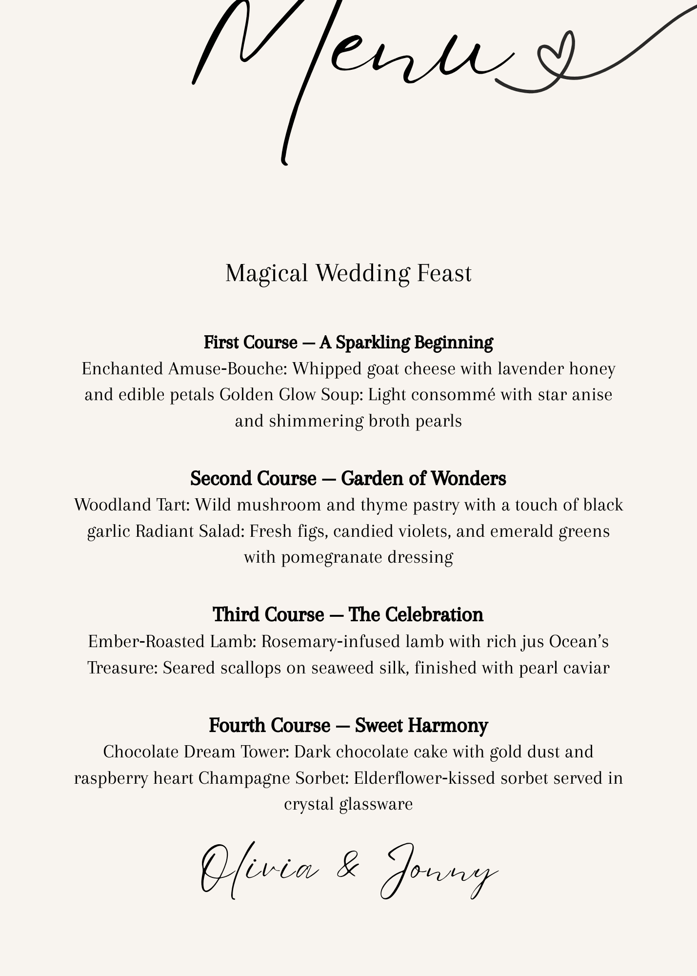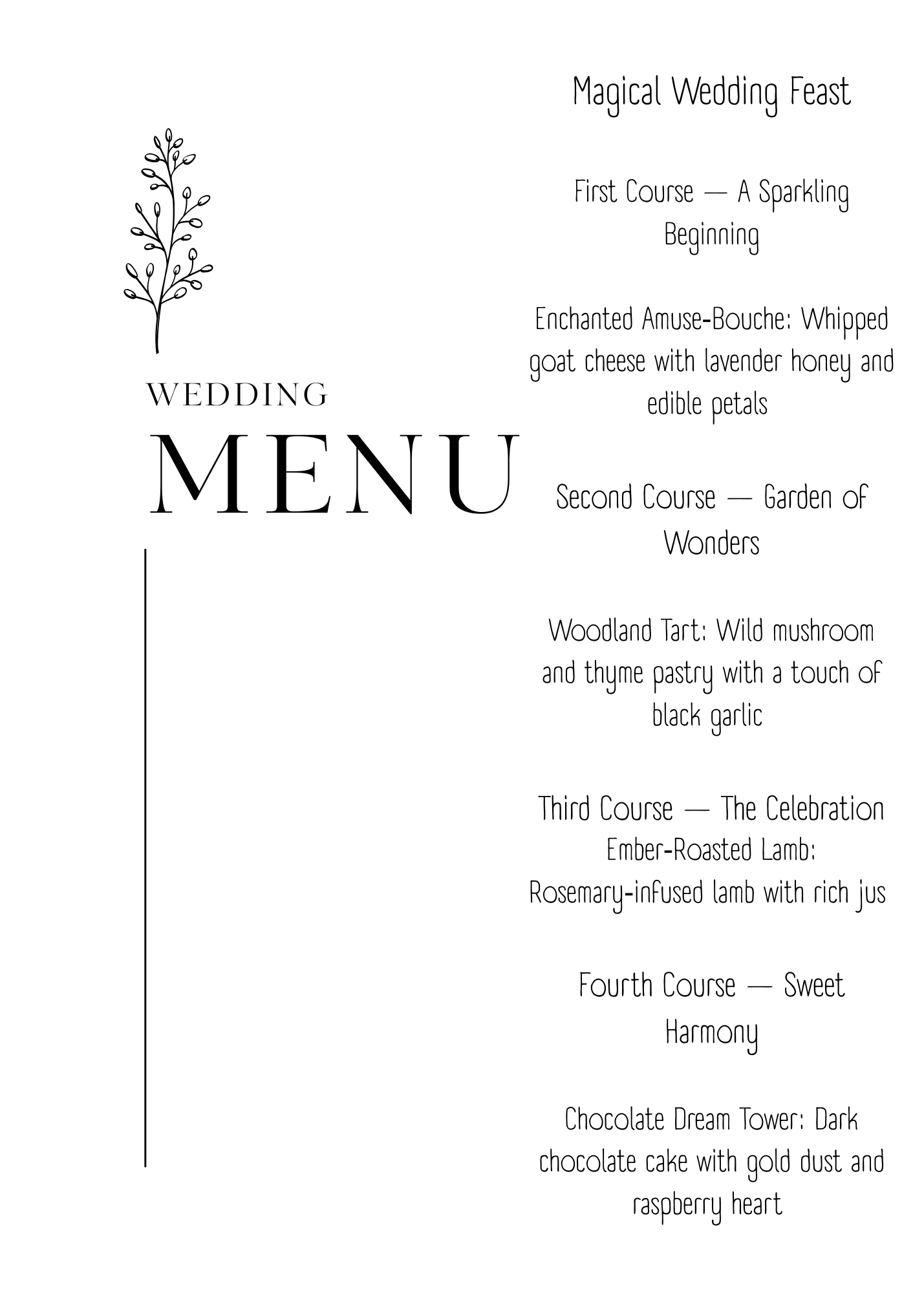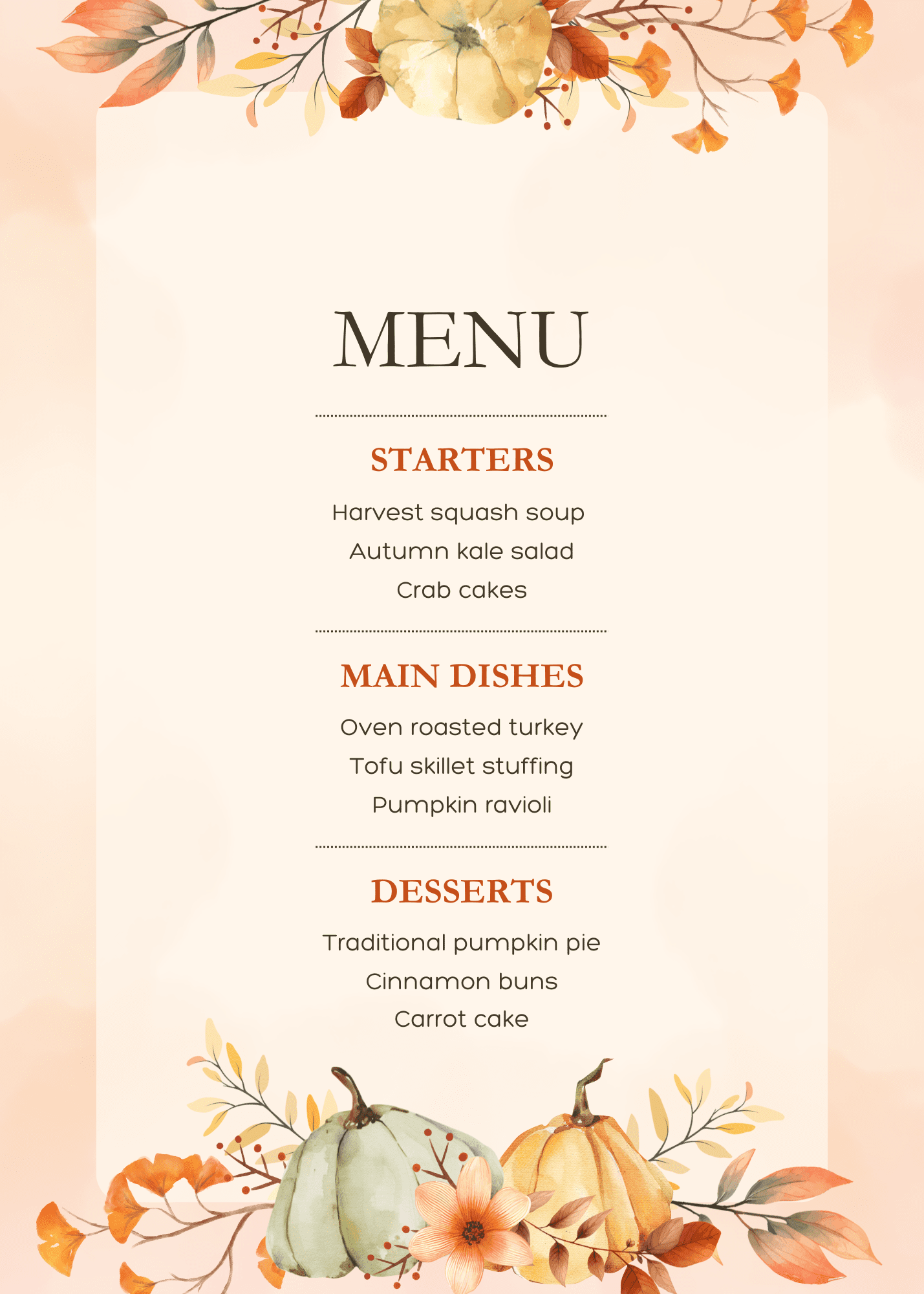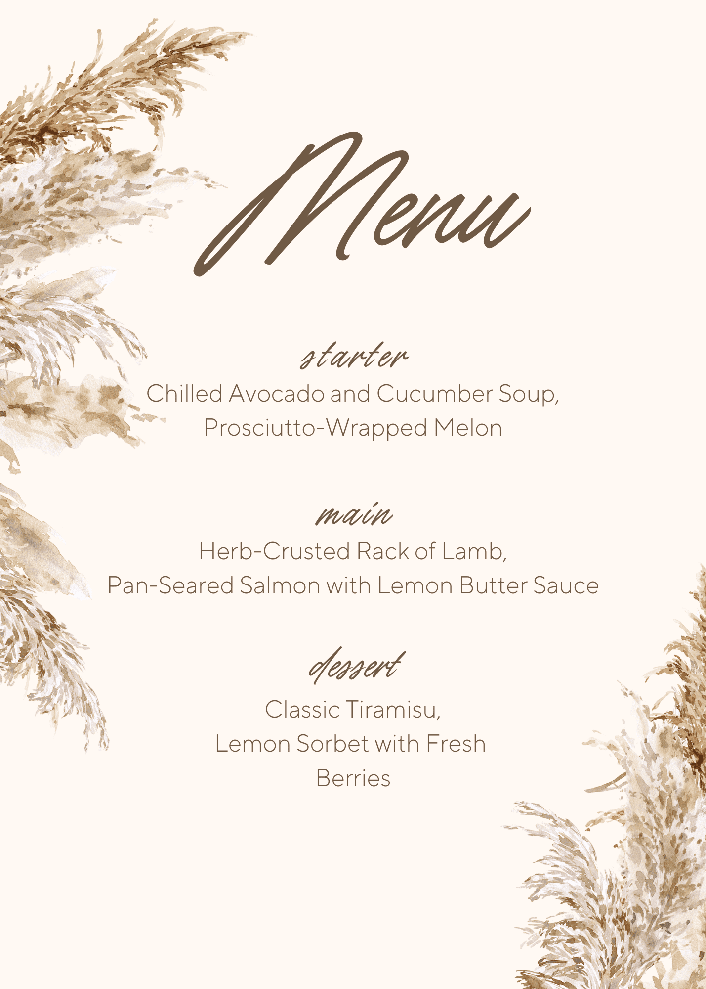 Pick a size for Menu card. A4- A5 (half A4) or DL (3rd A4)